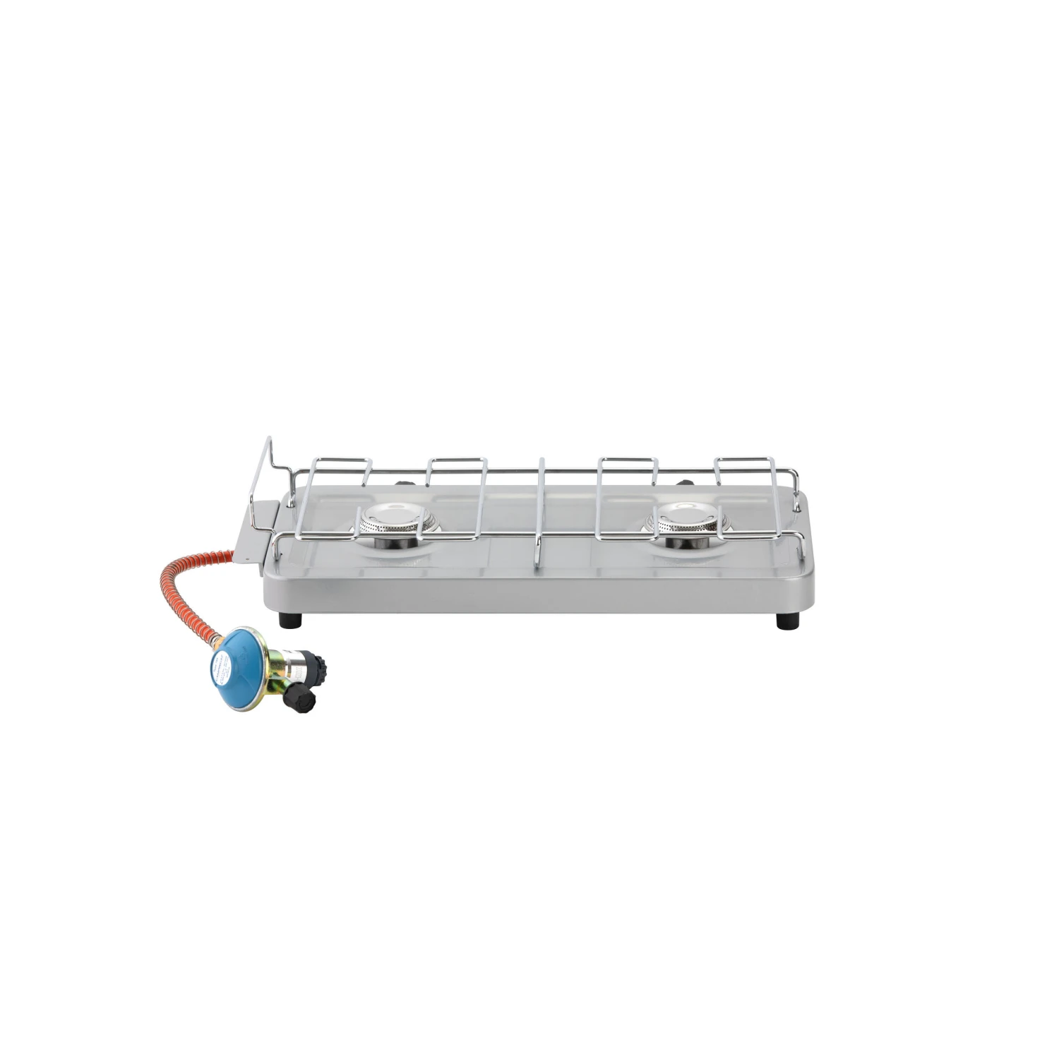 Designed for campers who need a two-burner stove that doesn’t take up too much room.This is a full 2-hob cartridge kit with a hose and integrated regulator. To use with CV470 cartridges.