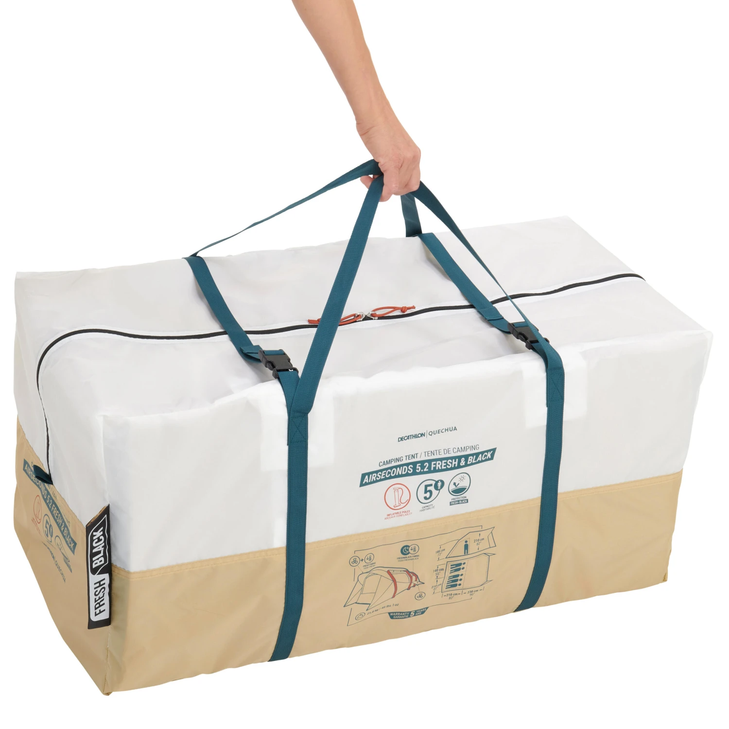 Designed by camping enthusiasts, this inflatable tent has space for five people to sleep and socialise comfortably.Blackout technology gives you a cool, dark place to sleep in this inflatable 5.2 tent. One bedroom for two people, one for three. Wind-resistant and waterproof.