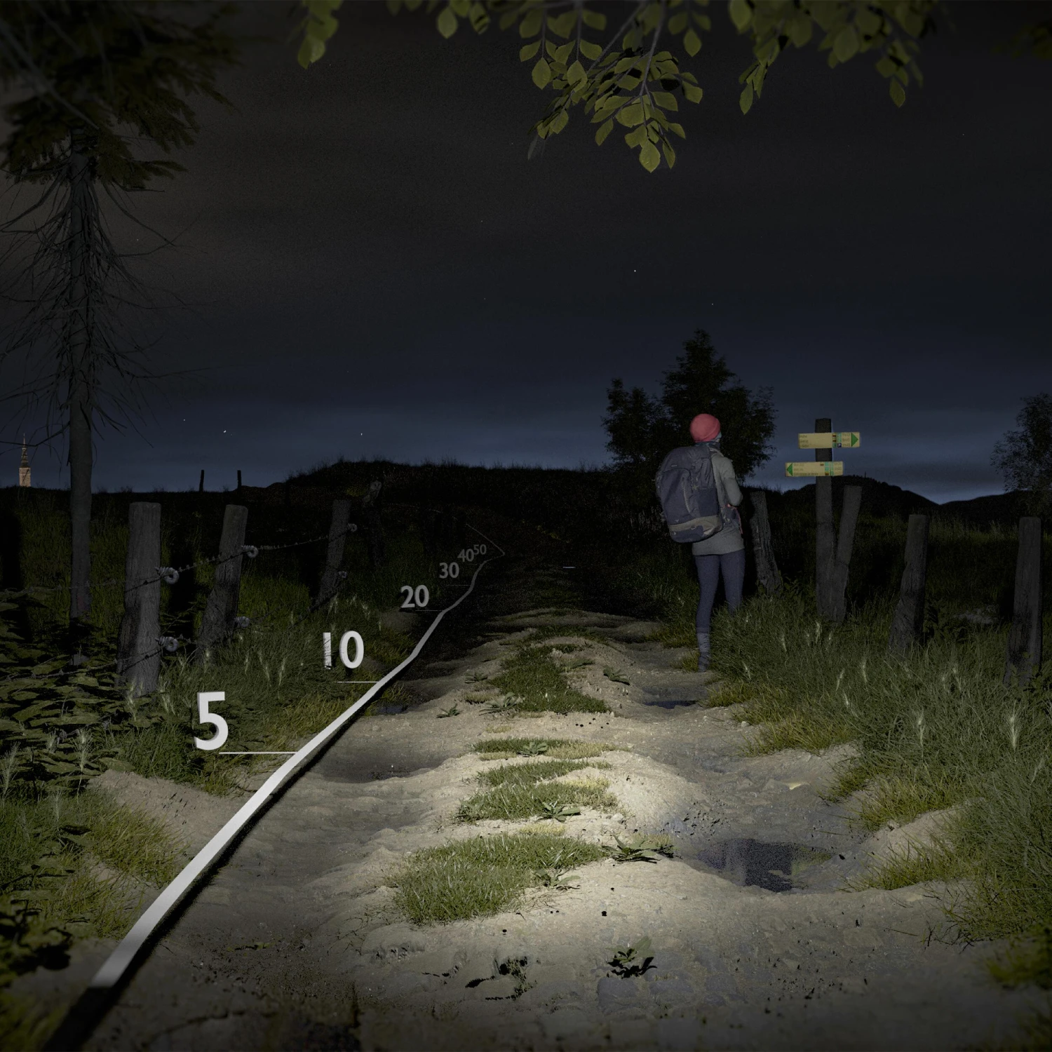 – Medium mode (80 lm) for walking on tracks or forest trails