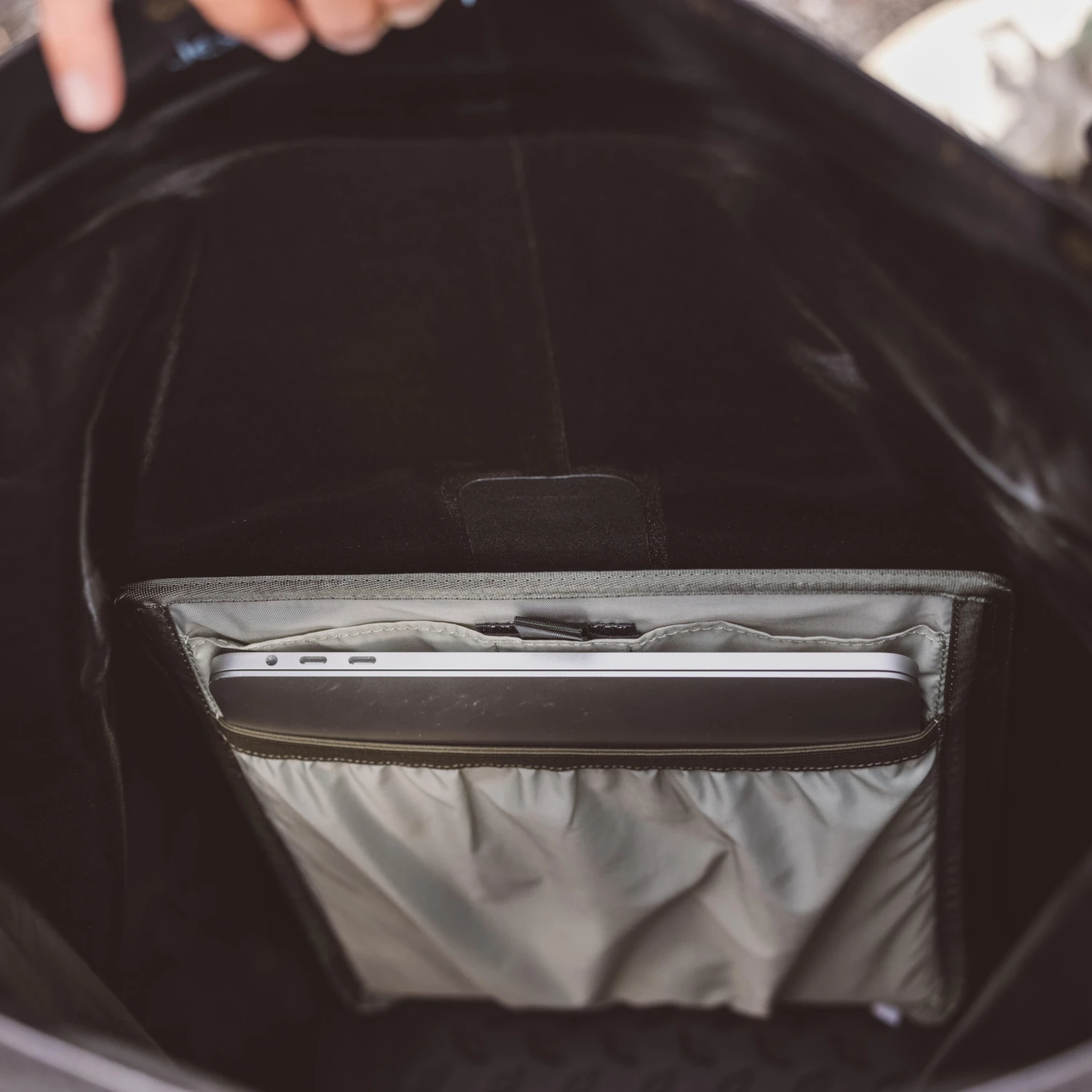 Watertight thanks to the roll top system. Rated IPX6 for waterproofing.This Ingress Protection Rating means that the product withstands a high-pressure water stream (100 L/min) from any angle.